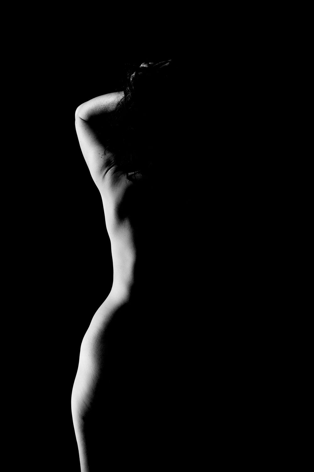 Black-and-white fine art photography, low-key partial nude. Instant high-resolution download with license options for commercial or personal use.