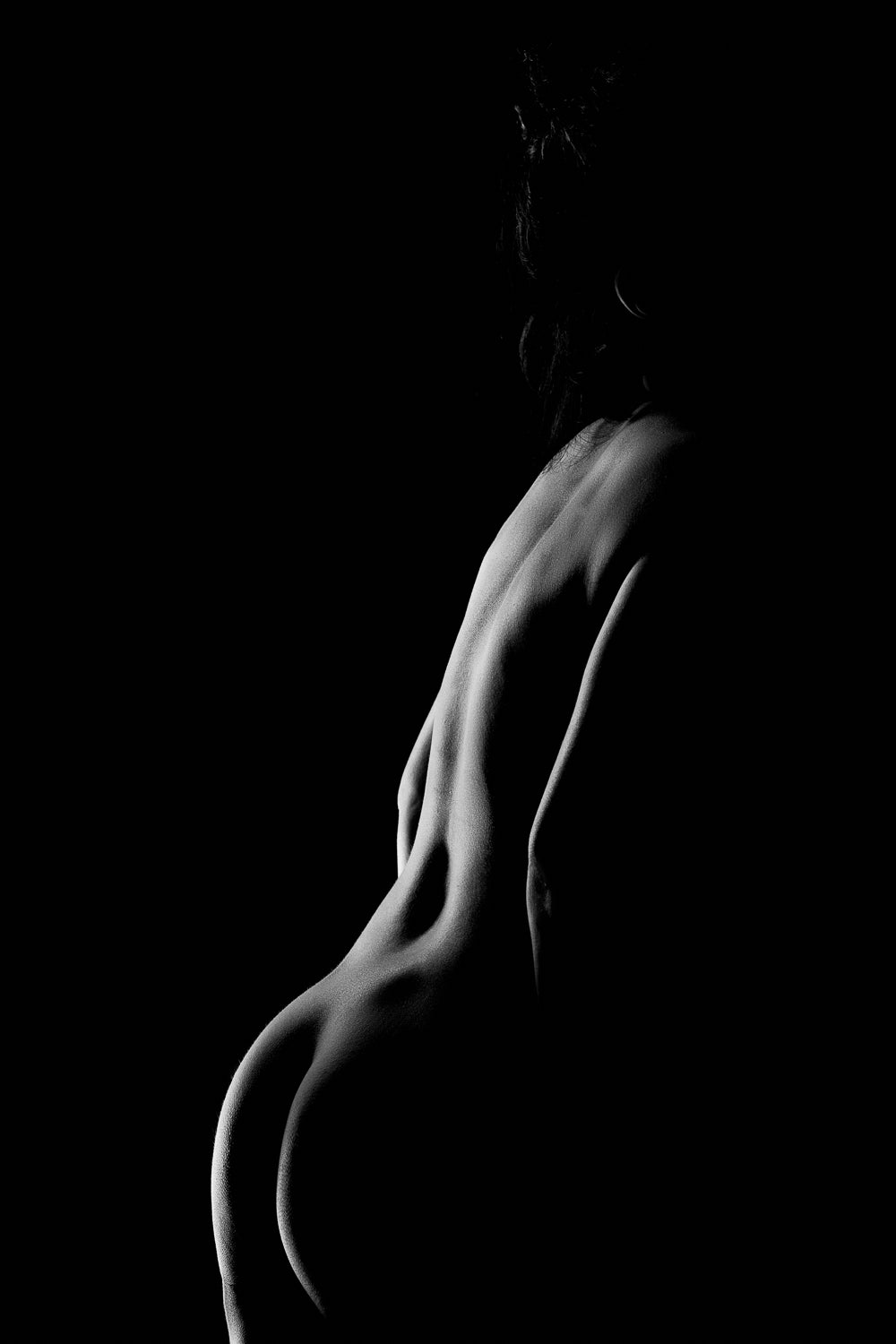 Black-and-white fine art photography, low-key partial nude. Instant high-resolution download with license options for commercial or personal use.
