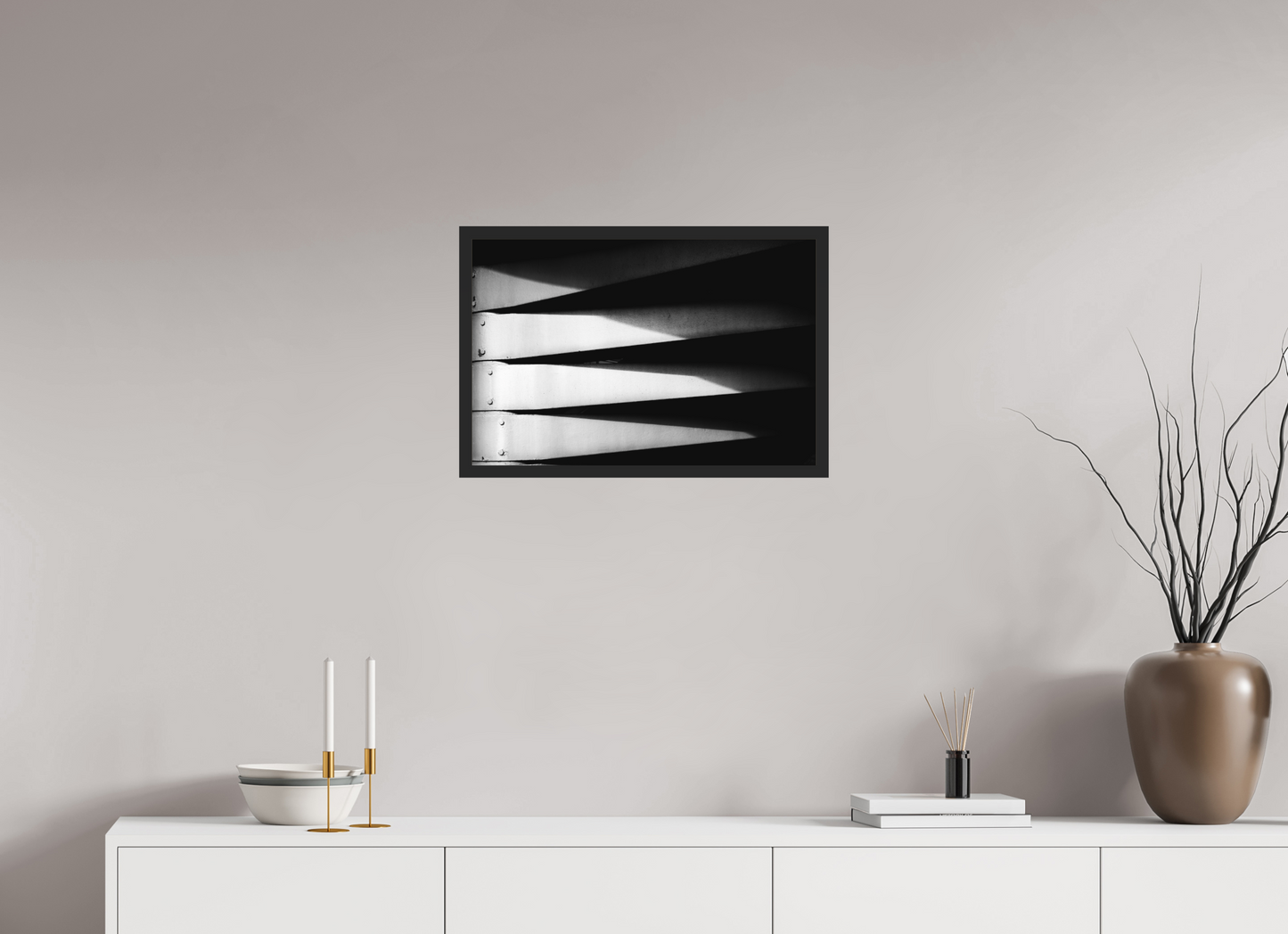 Abstrakte Schwarzweiß-Fotokunst, Architekturfotografie. Abzug auf Galerie-Niveau, bestellbar in 10 Konfigurationen und 8 Größen - mit oder ohne Rahmen, Verglasung, Motivrand.