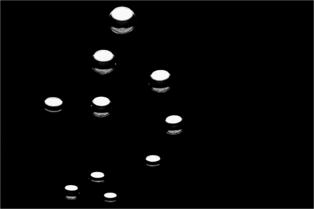 A seemingly random arrangement of lamps perfectly emphasized by the pitch black surrounding.