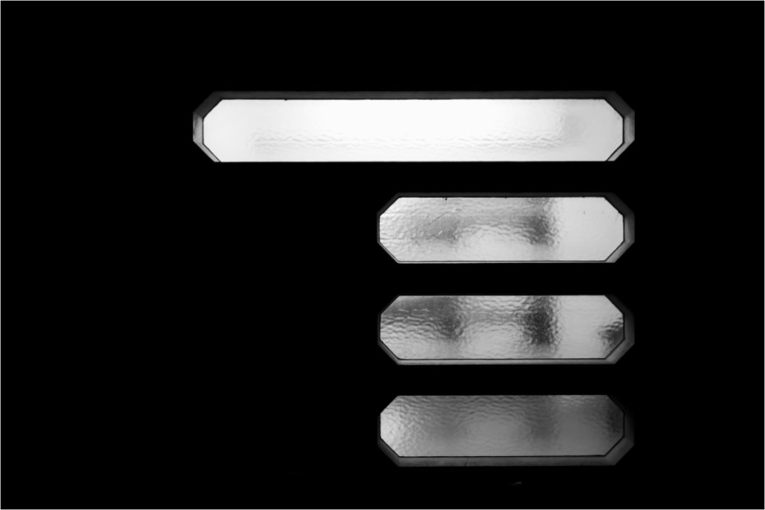 The four backlit frosted windows create the illusion of a hand pointing into the black void.