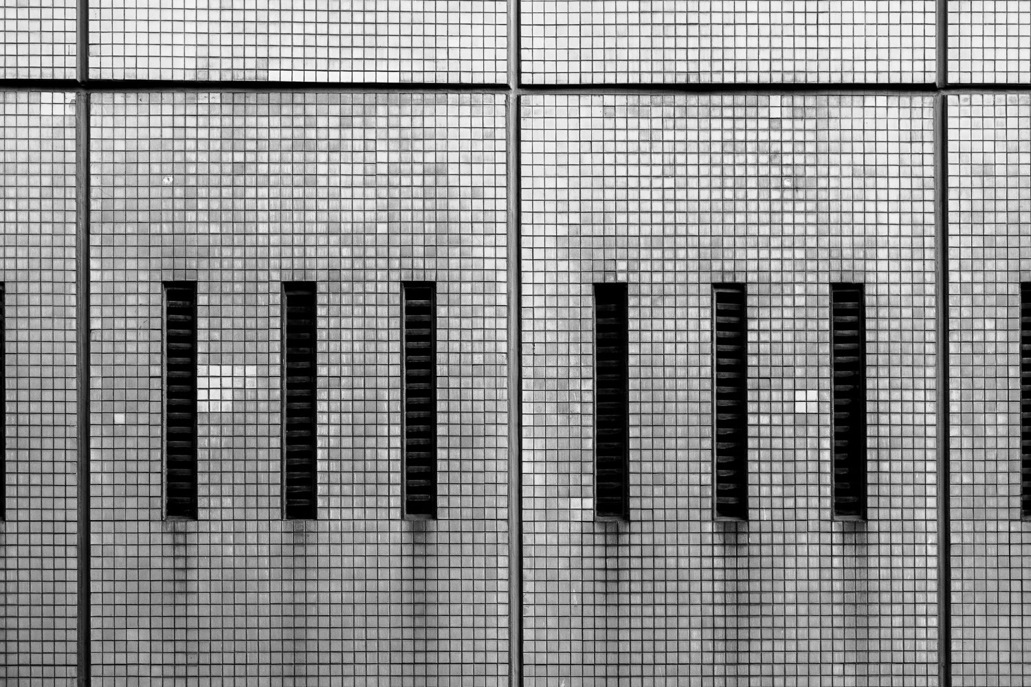 Naheinstellung Fassade mit Lüftungsgittern, Mannheim, Deutschland