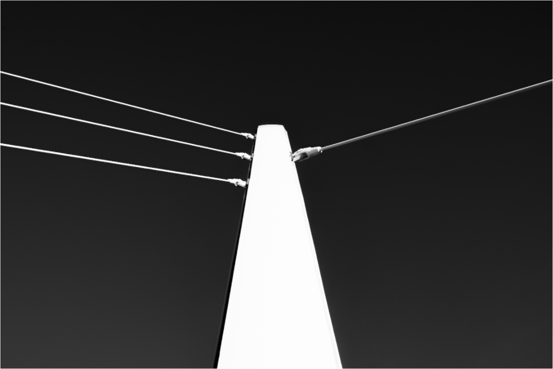 The meticulous, deliberate choice of framing, angle and distance in this minimal composition creates harmonic balance in crass asymmetry. The high contrast emphasizes the geometric simplicity against the dark sky.